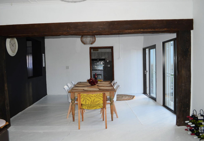Samuel Bosman Manor has four bedrooms and one full bathroom fitted with a bath, shower, toilet and basin. Three bedrooms are furnished with double beds and one bedroom has two three-quarter beds. Each room has a hairdryer. The kitchen is fully equipped for self catering and includes a gas oven and stove, dishwasher. There is a dining area and lounge with a fireplace, smart TV and Wi-Fi. The living area leads out into the garden. Braai facilities are available as well as a stainless-steel gas or fire pizza oven. There is a table tennis table in the garage right next to the house.