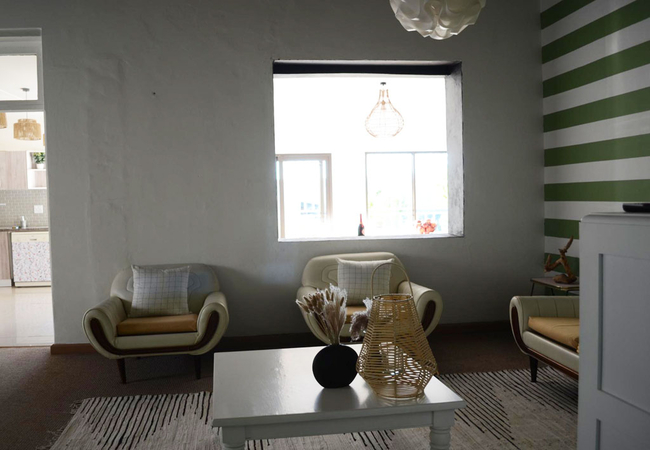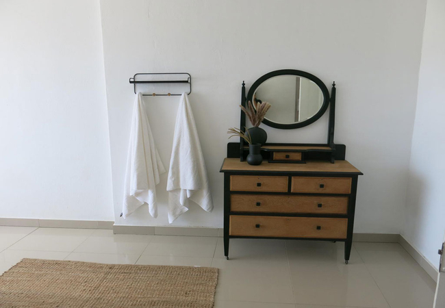 Samuel Bosman Manor has four bedrooms and one full bathroom fitted with a bath, shower, toilet and basin. Three bedrooms are furnished with double beds and one bedroom has two three-quarter beds. Each room has a hairdryer.