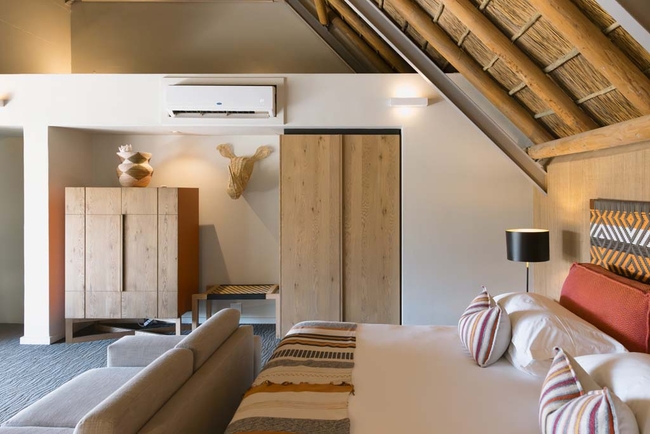 This spacious thatched Lodge offers guests a sense of modern comfort with a touch of bush authenticity. Interconnecting rooms, indoor and outdoor play areas and a child-friendly pool cater for guests of all ages. Each room can accommodate a maximum of 2 adults sharing with 1 child, subject to availability of rooms with sleeper couches. Four pairs of rooms at Gondwana Family Lodge are inter-leading. There are King / twin beds, air conditioning, tea / coffee making facilities, a mini bar, private deck and en-suite bathrooms with a shower and bath.