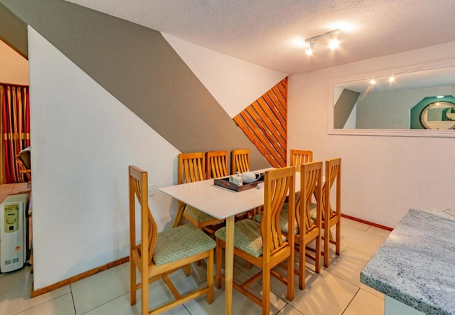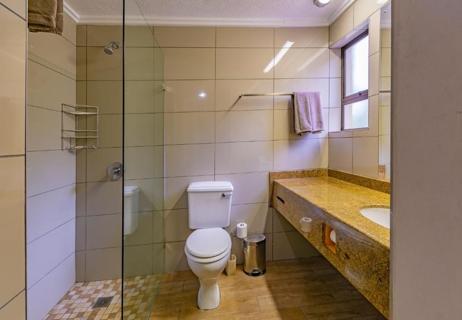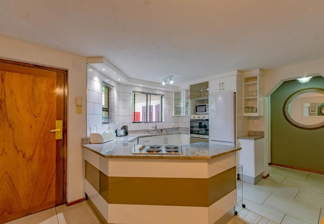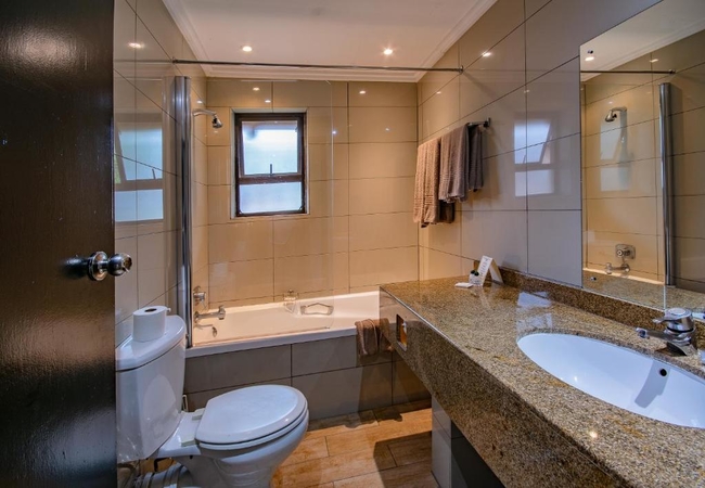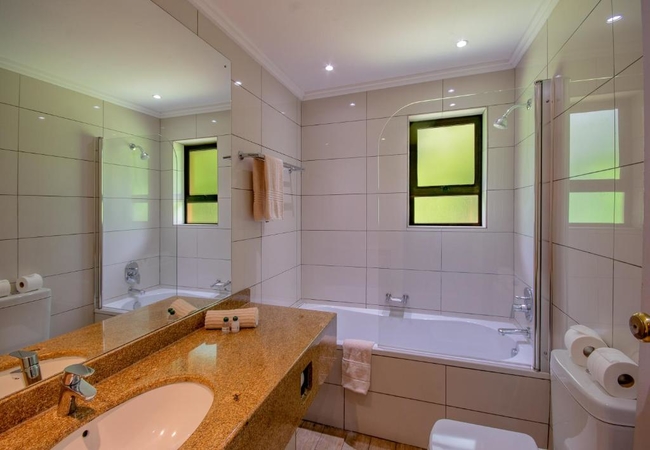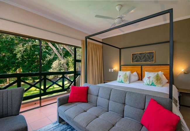These rooms are suitable for a family of two adults and two children under the age of 10. The room is furnished with one King-size bed in the main bedroom and a couch and a single bed in the lounge to accommodate two children. There is a small kitchenette as well as air-conditioning, a TV with DStv / satellite channels and a telephone.
