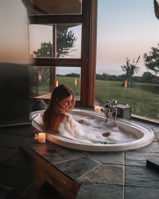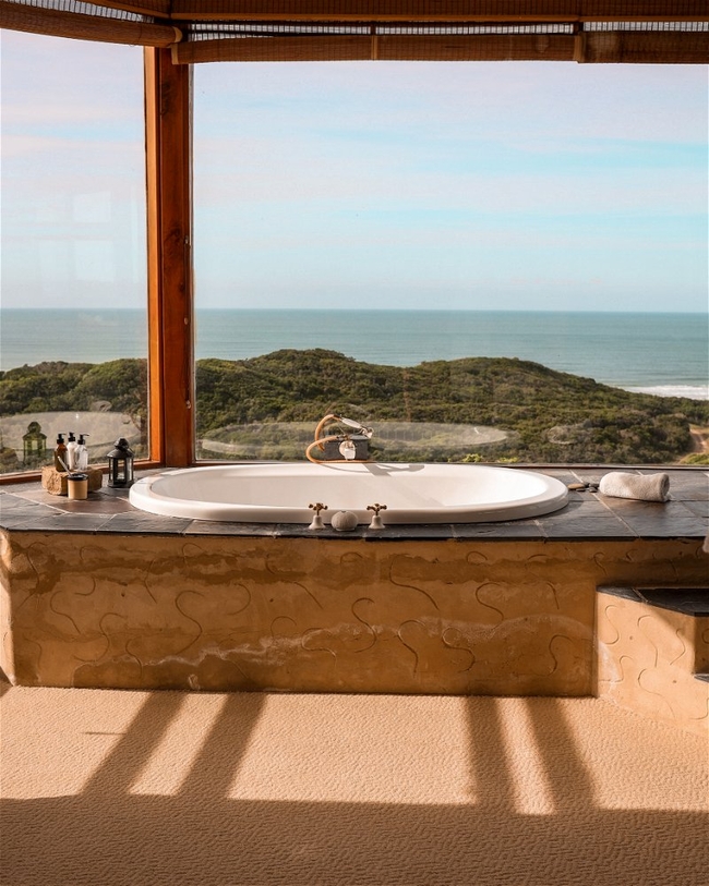 The main suite and guest suite are each furnished with a king-size bed and boast stunning views of the reserve and the ocean. Their en-suite bathrooms feature a shower, a bathtub, a toilet, and a basin, creating a private haven for relaxation.