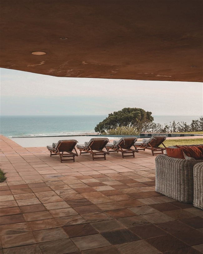 Outdoor spaces are equally captivating. Guests can gather in the spacious courtyard for al fresco dining or take in sweeping ocean views from the infinity pool and plunge pool. Sun loungers provide the perfect spot to relax, while braai facilities and an outdoor pizza oven ensure memorable culinary experiences under the open sky.