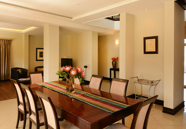 All the rooms have an en-suite bathrooms and are very spacious. There is a TV with DStv / satellite channels, wireless internet, a safe, hair dryer, desk and tea / coffee making facilities.