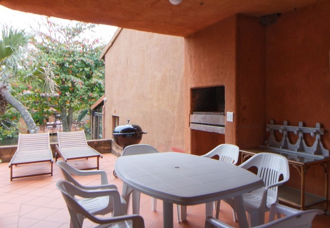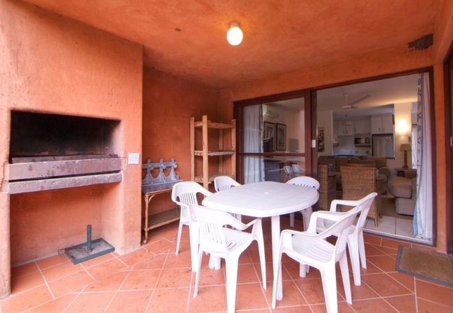 The kitchen is well equipped for self catering with a microwave, fridge and washing machine. The living area opens out on a covered patio with braai facilities. The large lawn is perfect for children to play on.