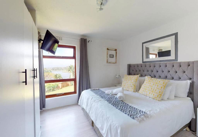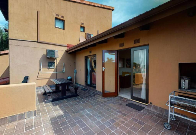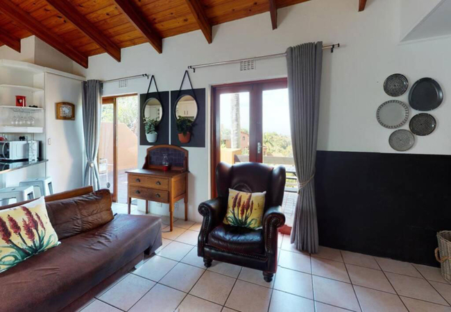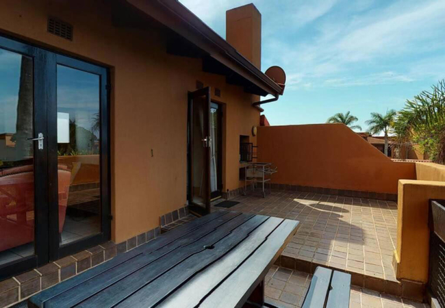The apartment opens out onto a patio with a picnic bench, braai facilities and lagoon views.