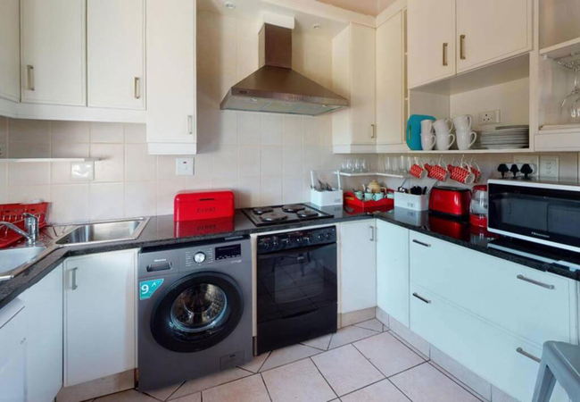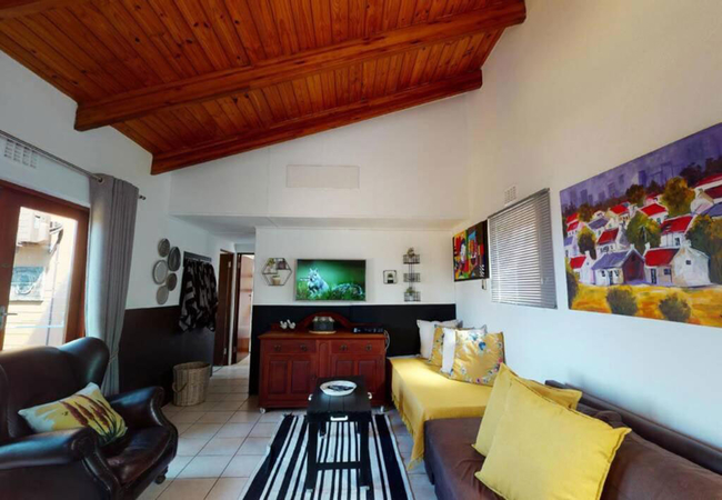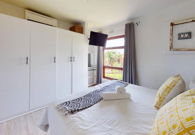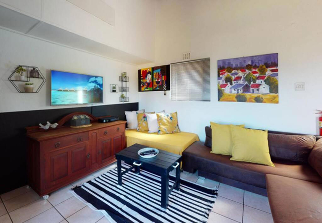 The kitchen has all the necessities for self-catering and includes a dishwasher, washing machine and tumble drier for convenience. The comfortable lounge area features a LED TV with the full DStv Package. There are two air conditioners in the flat and roof fans.