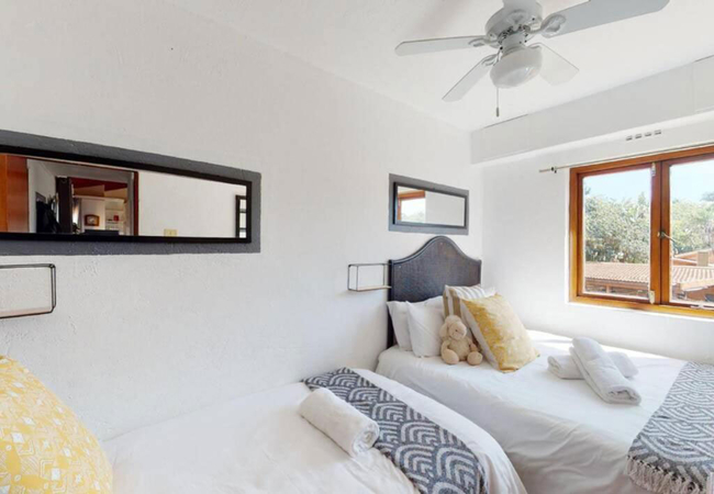 San Lameer Villa 2008 can comfortably accommodate four guests in two bedrooms. The main bedroom has a double bed and the second bedroom has two single beds. The bathroom has a shower over the bath. The kitchen has all the necessities for self-catering and includes a dishwasher, washing machine and tumble drier for convenience. The comfortable lounge area features a LED TV with the full DStv Package. There are two air conditioners in the flat and roof fans. The apartment opens out onto a patio a picnic bench, braai facilities and lagoon views.