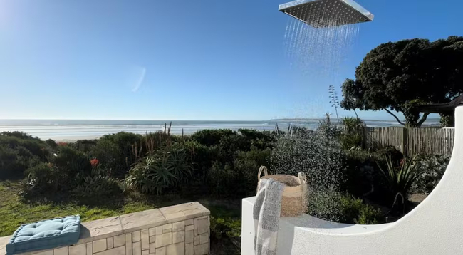 Outside, guests can enjoy a spacious patio and courtyard furnished for relaxation, an outdoor braai for alfresco dining, and an outdoor shower, perfect for rinsing off after a day on the beach. The property boasts scenic sea views and direct access to the sandy shoreline, with free secure parking provided.