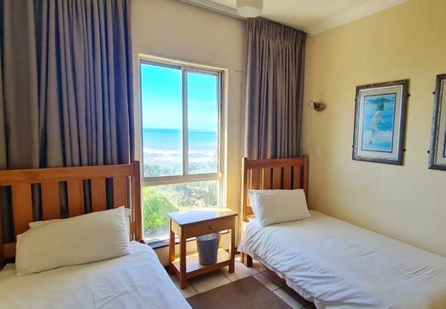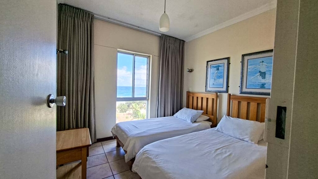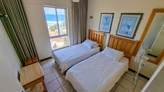 Santana 406 has two bedrooms. The main bedroom has a Queen-size bed and an en-suite bathroom with a bath. The second bedroom has two single beds. There is a separate bathroom with a shower. The lounge has a sleeper couch for two children. The kitchen is fully equipped. The lounge is comfortably furnished and there is a dining area. The TV with selected channels. The living area leads to the balcony which has beautiful sea views and overlooks Margate Beach. Secure covered parking is available. The complex has a heated swimming pool, communal braai facilities and a playground. Putt putt, laundry facilities, extra parking and a restaurant are all available at an additional cost.