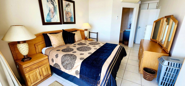 Situated on the first floor of a modern, popular complex in Margate, Santorini 202B provides direct access to the beach and lies close to the Margate fishing pier. The main bedroom and lounge offer beautiful views of the sea, and the building is equipped with a lift, making the unit accessible for guests with limited mobility. The main bedroom features a queen bed and an en-suite bathroom with a corner bath, shower, toilet, and basin. The second and third bedrooms each have two single beds, and all bedrooms are fitted with air conditioning for added comfort. These two bedrooms share a separate bathroom, which includes a bath, toilet, and basin, as well as a washing machine and tumble dryer for convenience. The apartment includes a modern, fully equipped kitchen with a fridge, stove, dishwasher, and microwave. The lounge offers seating for six, a flat-screen television, and a selection of DSTV channels. A large balcony extends from the lounge, complete with patio furniture and a built-in gas braai, providing an ideal spot to enjoy the sea views. Parking is available with a designated carport for the unit, as well as additional visitor parking. Guests also have access to the complex’s swimming pool and communal braai facilities. All linen is supplied, except for towels.