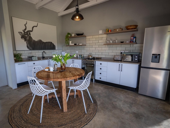 The open-plan living area and kitchen are fully equipped, creating a cozy home-away-from-home atmosphere. You can relish a delightful meal at the braai or unwind on the stoep.
