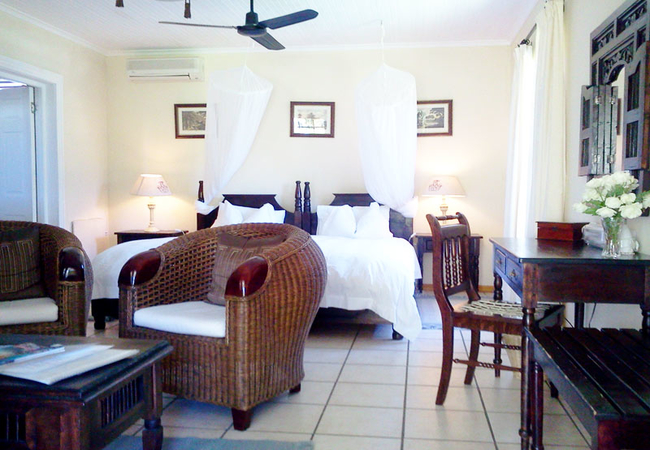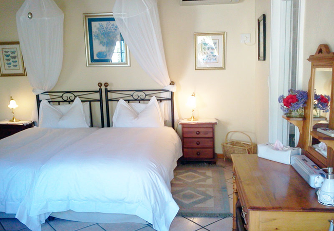 Our accommodation consists of five luxury air-conditioned garden bed rooms with en-suite bathrooms with garden view and 1 cottage with 2 bed rooms and one bathroom with street view.