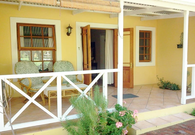 Breakfast consists of fruit juice, a wide choice of muesli and cereals, yoghurt and milk from Gay's Dairy and fruit in season, followed by eggs to order, bacon, mushrooms, local sausages and tomatoes. Then there's toast and locally made jams , cheese and cold meats, tea or coffee. Breakfast is served on the terrace under the vines and in winter in the specious dining room.