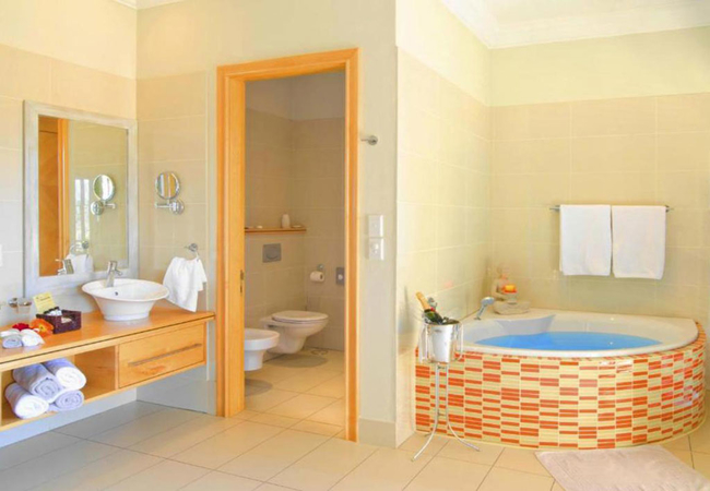 The Deluxe Suites have an extra large bed and en-suite bathroom with a bath and shower. There is also a private balcony / patio and an outside shower in each room. All the rooms have a Minibar, tea / coffee facilities, separate lounge area, bathrobes, slippers, hairdryer, TV with satellite channels, personal safe, Wi-Fi and complimentary toiletries.