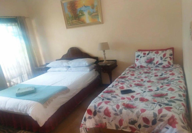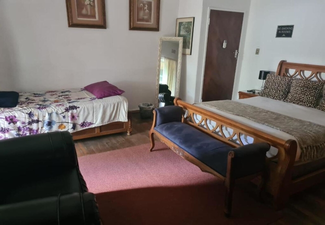 This luxury room contains a double bed and a single bed which is located inside the house and has a shared entrance. It is equipped with air-conditioning and an en-suite (bath) bathroom. A plasma TV with a wide variety of selected DStv channels.