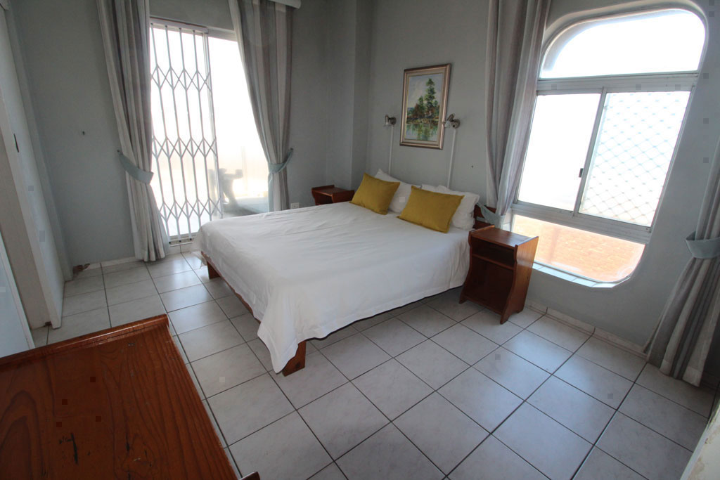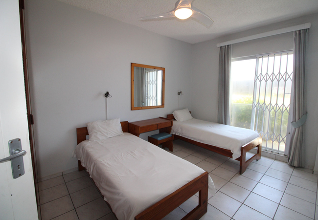 Seagull 101 is a comfortably furnished holiday apartment in Margate consists of two bedrooms. The main bedroom is furnished with a double bed, the second bedroom is furnished with two single beds and there is a single bed in the lounge area. One bathroom is fitted with a bath, toilet, and basin. The second bathroom is fitted with a shower, toilet, and a basin. There is a lounge, dining room, and kitchen that is equipped for self-catering accommodation, with a microwave, kettle, toaster, cutlery, and refrigerator.
