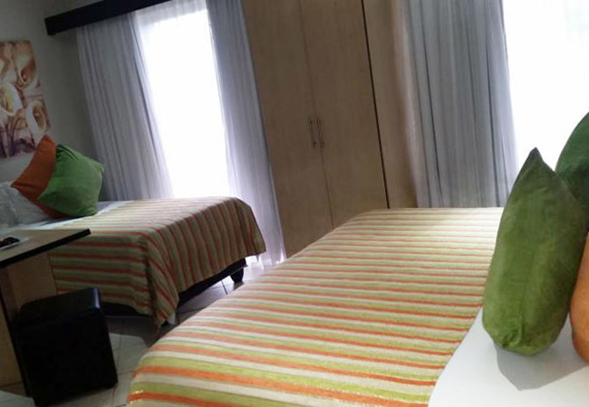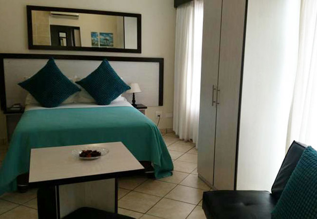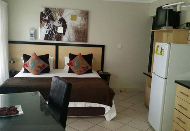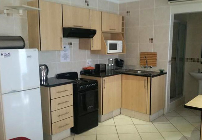 One Room Studio apartment in the lodge with three single beds and is fully equipped for self-catering. It is also equipped with Wi-Fi, an en-suite bathroom with a shower as well as air-conditioning, dining area, a kitchenette, fridge, microwave, oven, stove, iron and a TV with DStv.