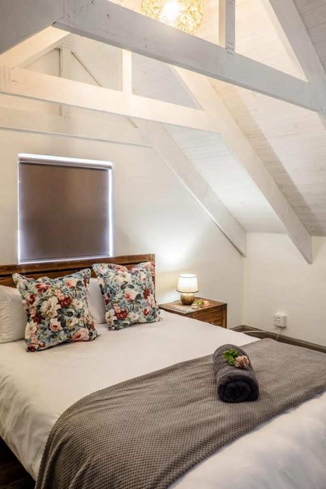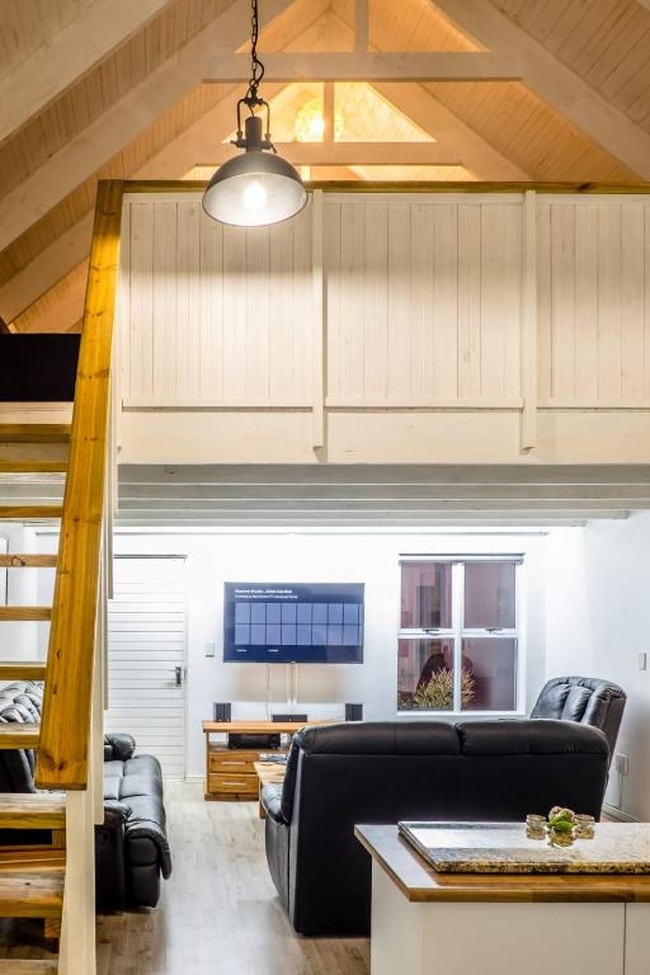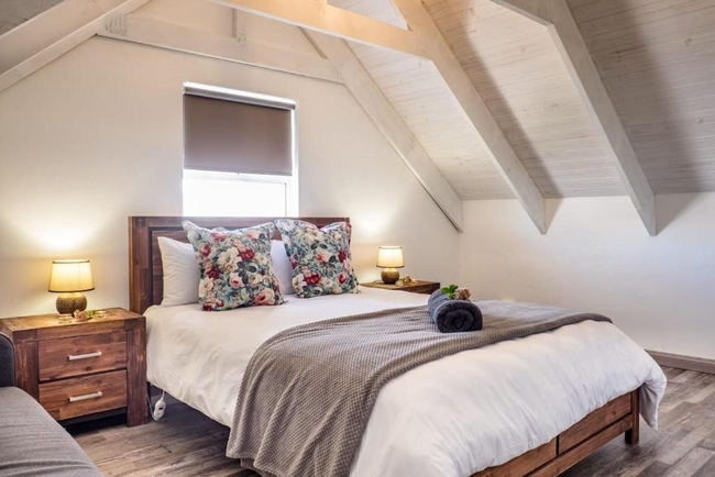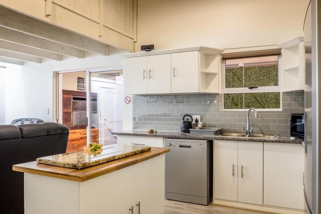 This charming double-storey cottage offers a comfortable retreat for up to 6 guests, with 3 well-appointed bedrooms and 2 bathrooms. Each bedroom is furnished with a double bed, including one located upstairs for added privacy. The en-suite bathrooms, serving the 2 downstairs bedrooms, are equipped with a shower, washbasin, and toilet. Guests will find all linen and bath towels provided, though beach towels are not included. The inviting open-plan living area features a fully equipped kitchen with a stove, oven, microwave, fridge-freezer, cutlery, crockery, and a dishwasher. Adjacent to the kitchen is a cozy lounge area with comfortable seating and a flat-screen TV with Netflix. Complimentary Wi-Fi is available throughout the cottage. An enclosed patio, accessible via a sliding door, boasts a dining table, an additional TV, and a built-in braai, making it an ideal space for gatherings. The patio opens onto a charming garden area, perfect for relaxing outdoors.