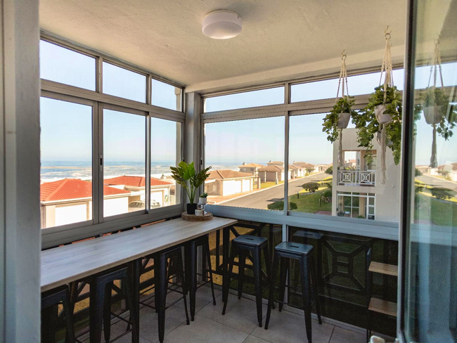 Sliding doors lead to an enclosed balcony that presents stunning ocean views, an ideal setting to enjoy a sundowner in the evening. Secure parking is also provided for guests' peace of mind.
