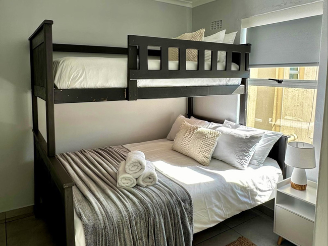This spacious apartment comfortably accommodates up to 7 guests with its 3 well-appointed bedrooms and 3 bathrooms. Two of the bedrooms feature double beds, while the third is equipped with a tri-bunk bed. The bathroom, shared by the guests, includes a shower, washbasin, and toilet. The open-plan living area boasts a fully equipped kitchen, featuring essential appliances such as a stove, oven, microwave, and fridge-freezer, alongside useful items like a toaster, kettle, and all necessary cutlery and crockery. The lounge offers a comfortable seating arrangement, a TV, and complimentary Wi-Fi, ensuring a relaxing space to unwind. Sliding doors lead to an enclosed balcony that presents stunning ocean views, an ideal setting to enjoy a sundowner in the evening. Secure parking is also provided for guests' peace of mind. The complex offers a range of leisure facilities, including a swimming pool, designated BBQ or braai areas, a children's playground, tennis courts, and secure dedicated parking spaces.