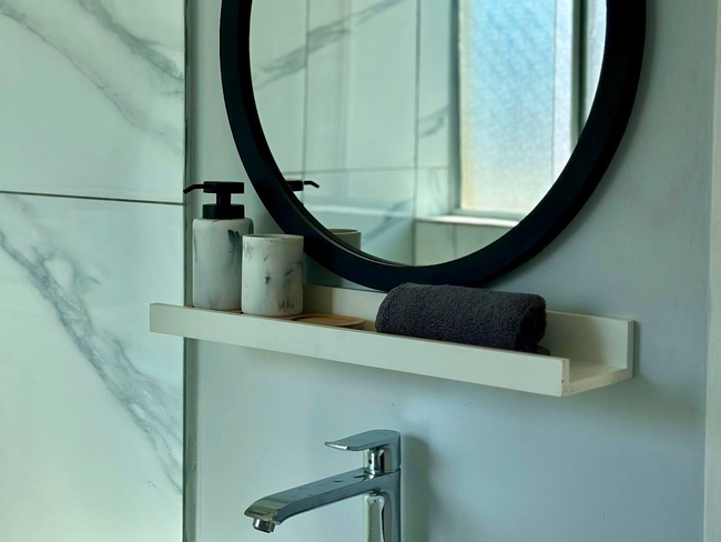 This spacious apartment comfortably accommodates up to 7 guests with its 3 well-appointed bedrooms and 3 bathrooms. Two of the bedrooms feature double beds, while the third is equipped with a tri-bunk bed. The bathroom, shared by the guests, includes a shower, washbasin, and toilet.