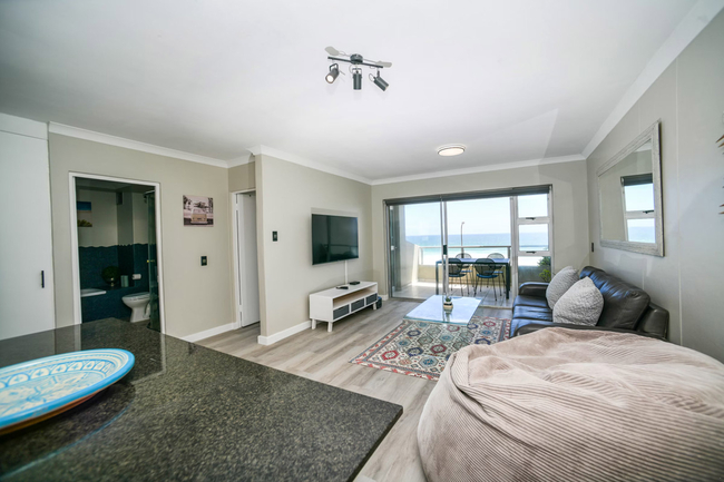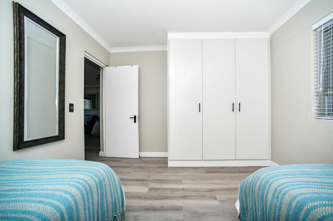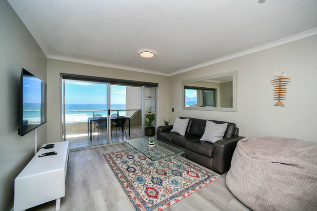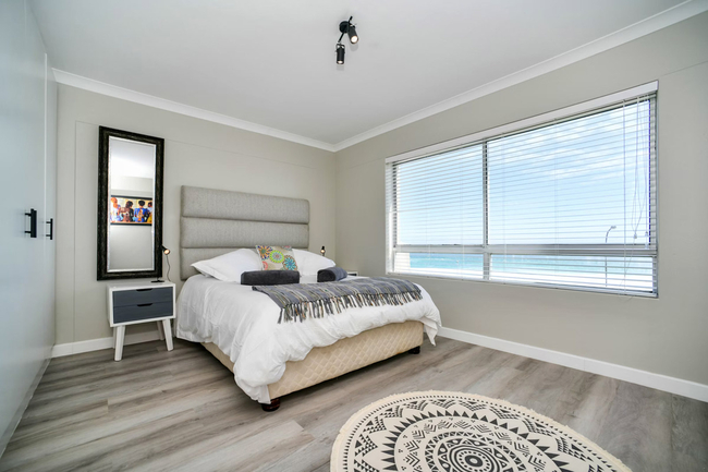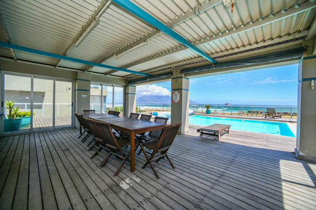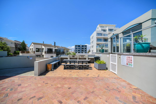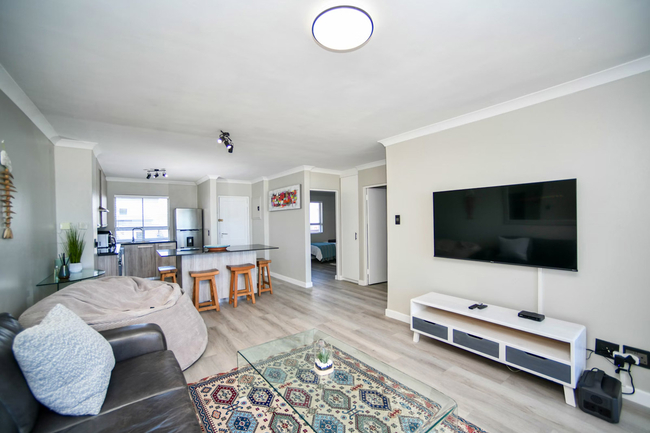 This apartment comfortably accommodates up to four guests with two well-appointed bedrooms and a shared bathroom. The main bedroom is furnished with a queen-size bed, while the second bedroom features twin beds. The bathroom includes a bath, shower, basin, and toilet, and guests are provided with fresh linen and towels. The living space is open-plan, creating a welcoming environment for both relaxation and entertaining. The modern kitchen is fully equipped with a fridge-freezer, stove, oven, microwave, air fryer, cutlery, crockery, and a Nespresso machine. A sleek countertop with stools adds a casual dining option, while a dishwasher makes mealtimes more convenient. The lounge area is comfortably furnished and features a Smart TV with Netflix as well as complimentary Wi-Fi. To ensure uninterrupted convenience during load-shedding, a plug-and-play inverter is provided for powering essential devices. Large sliding doors open onto a private balcony that showcases uninterrupted views of the Atlantic Ocean and the striking outline of Table Mountain. This outdoor space is perfect for enjoying a morning coffee, relaxing with a good book, or watching the sunset over the ocean. Guests have the benefit of a communal heated swimming pool and braai facilities, creating the perfect setting for social gatherings or quiet leisure. A coin-operated laundry service is available within the building, and secure parking is provided to give guests peace of mind.