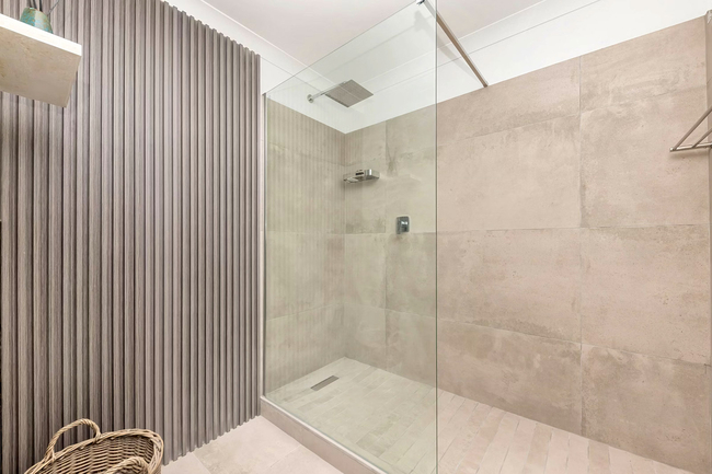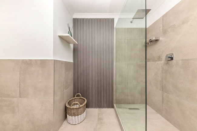 This apartment comfortably accommodates up to four guests with two well-appointed bedrooms and a shared bathroom. The main bedroom is furnished with a queen-size bed, while the second bedroom features twin beds. The bathroom includes a bath, shower, basin, and toilet, and guests are provided with fresh linen and towels.