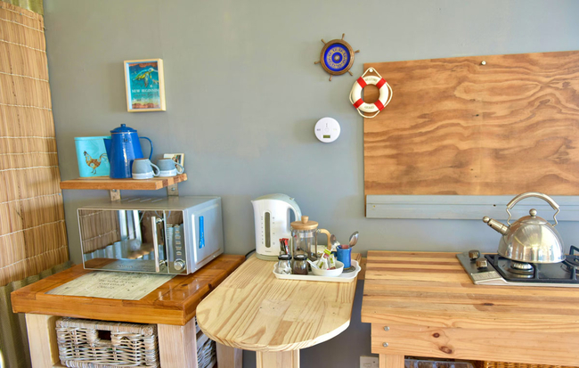 This charming cottage is designed to accommodate two guests in comfort, offering an open-plan layout that combines the sleeping and living areas seamlessly. The sleeping area is furnished with a queen-size bed, and the en suite bathroom includes a shower, toilet, and basin. Quality linen and bath towels are provided for your convenience. The well-appointed kitchen is equipped with essential appliances and utensils, including a stove, microwave, fridge-freezer, kettle, as well as cutlery and crockery. A counter with chairs provides a practical dining or work space. The lounge area is furnished with inviting seating and features a television with access to Netflix and YouTube, along with complimentary Wi-Fi for entertainment or remote work. Guests can enjoy the outdoors on a private deck and have access to a shared garden space, which includes a fire pit—ideal for relaxing evenings under the stars.