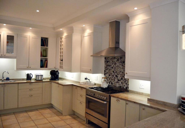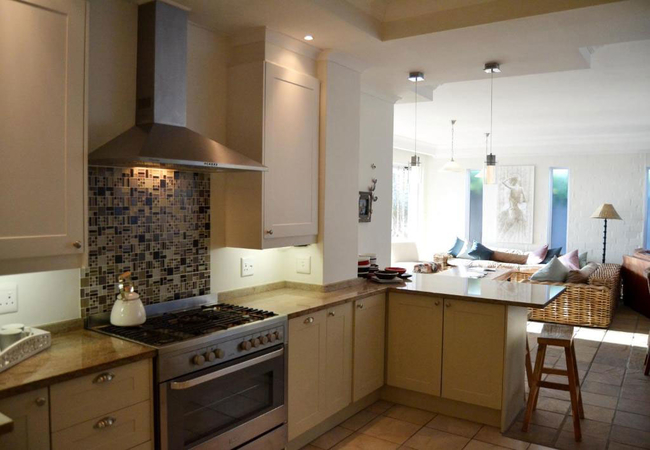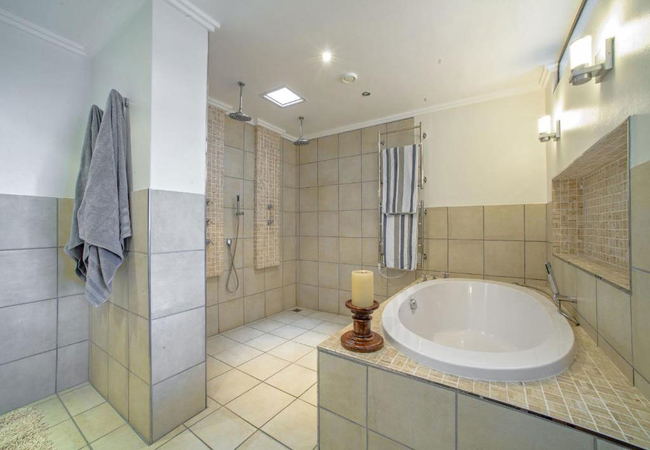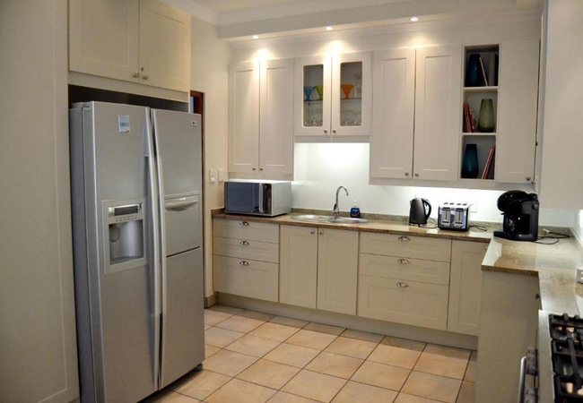 Sensiri Orca has five bedrooms. The main bedroom is furnished with a King-size bed, the second bedroom is furnished with a Queen-size bed and the third bedroom is furnished with two single beds. These bedrooms all have en-suite bathrooms with either a bath or shower. The fourth bedroom is furnished with a Queen-size bed and the fifth bedroom is furnished with two single beds. These two rooms share a bathroom. The kitchen is fully equipped for self catering, including a dishwasher. There is a comfortable lounge / dining area which has a fireplace, TV with satellite channels and free Wi-Fi is provided. The living area leads to a covered patio with stacking doors which has furniture and a built in braai. This area leads onto the garden. A unique feature of this home is the rooftop entertainment area with stunning views. The home has parking space for two vehicles.