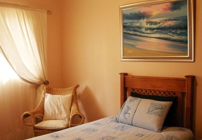 Single room with a desk. The bed is three-quarter and has an en-suite shower room. There is ample cupboard space and high ceilings. All rooms with an en-suite bathroom, air-conditioning and television. Guests also have full use of the guest lounge, games room, swimming pool and gardens.