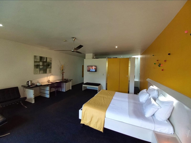 All roomshave a very convenient black quartz floor. Each room has a comfortable sitting area inside and outside and is fitted with air-conditioning (heating and cooling), ceiling fan, mini bar, big flat screen DStv, wall safe, king size bed with Auping mattresses (Dutch quality), free Wi-Fi, hair dryer, coffee and tea facilities. The bathrooms are very luxurious with (double) basins, separate toilet, bath, separate shower and towel heater.