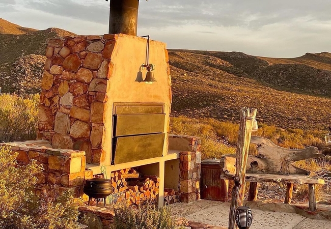 Elevated above the Tankwa plains on the lower foothills of the majestic Swartruggens, Serenity offers a stylish, cool, free-flowing space from which to observe the vast surrounding array of natural beauty. Favourite features include a wide covered veranda, a sparkling rock pool as well as an outdoor shower and bath surrounded by stunning natural rocky terrain. Featuring three stylishly appointed bedrooms, two bathrooms (one with shower only) and an exquisite open plan lounge, dining and kitchen area opening onto a sweeping 3.5 meter deep verandah, Serenity can accommodate up to six guests. An outdoor built-in barbecue with seating provides the perfect location for tasty cook-ups while observing the spectacular evening sunset, glass of wine in hand. Tierkloof Serenity boasts magnificent views of the surroundings and comprises three bedrooms and two bathrooms. Two of the bedrooms are furnished with a Queen-size bed each while the third bedroom has two single beds. The first bathroom is fitted with a bath and shower while the second bathroom has a shower only. In addition, the house also has an outdoor bath and shower. The kitchen is well-equipped with a fridge-freezer, gas stove and oven. The open-plan living area has a dining table, comfortable seating and a fireplace for the chilly winter evenings. The living area opens onto a deck which boasts an elevated swimming pool and a long patio with chairs and daybeds. There is also free Wi-Fi and a small Bluetooth speaker available for guests to use.