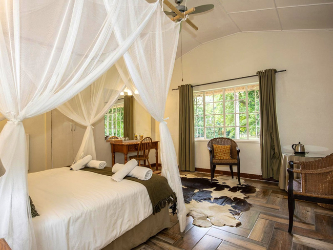 Ceiling fans circulate the fresh air, while tea and coffee stations, writing desks, secure safes, and complimentary Wi-Fi add both comfort and convenience. Guests can expect crisp linen and clean towels upon arrival, with every detail attended to with care.