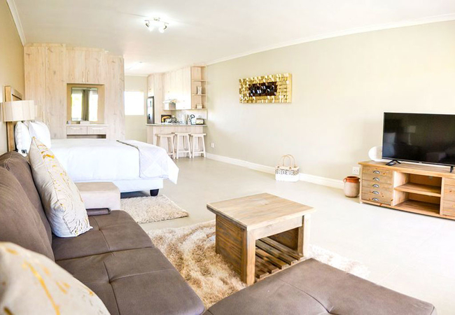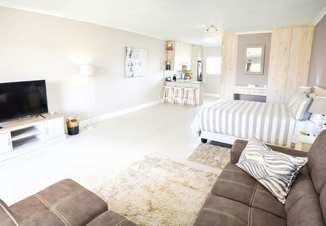 Unit Five is a luxury self-contained unit with open plan concept and consists of a fully equipped kitchen, bathroom, seating area with TV and comfortable sleeping configuration for a small family of four guests (sleeps maximum three adults or two adults and two kids).