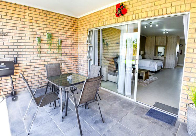 Each unit has access to its own Lapa with built in braai, table and chairs and rolled up side covers. Each unit has access to its own splash pool. Sun chairs and swimming towels provided.