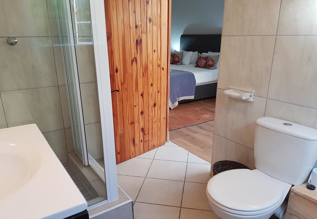 There are two one-bedroom apartments that each sleep up to two guests. A double bed, workstation and cupboards are in the bedroom. There is also an en-suite bathroom that consists of a toilet, shower and a basin in each apartment. The separate living area contains comfortable couch and a dining table. The semi equipped kitchenette consists of microwave, toaster, kettle, stove, oven, a bar fridge, hot plate, small oven and a washing machine. Outside on the patio there is outdoor furniture for guest use.