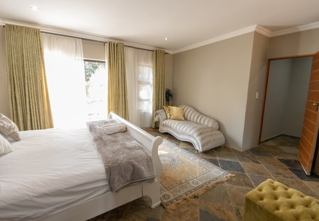 Shai Shai Hills Guest House in Pretoria offers five double rooms, which are elegantly furnished with a King-size bed and have an en-suite bathroom fitted with a shower, toilet and basin. Room facilities include a fan, hairdryer, tea / coffee station and Wi-Fi. Rooms also have a sitting area.