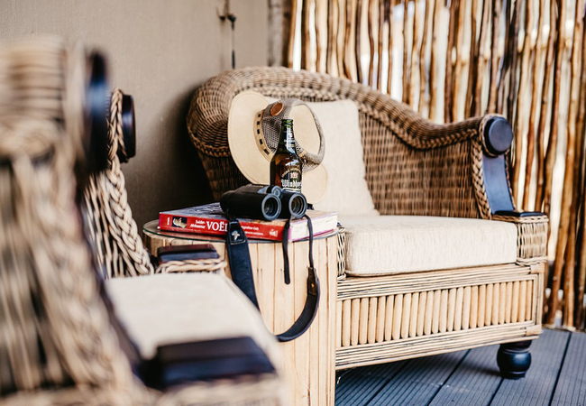 All the rooms have en-suite bathrooms with outside showers and bathtubs, towels and soaps. The rooms also have air conditioning, bar fridges, coffee/tea stations and a small safe. The beds are Queen-size with feather pillows and silk/cotton linens. The beds can also be converted into two single beds. There is a reading area and small veranda.