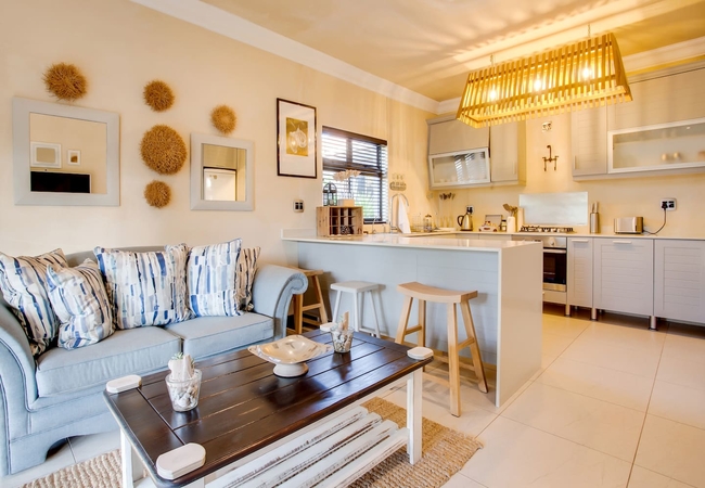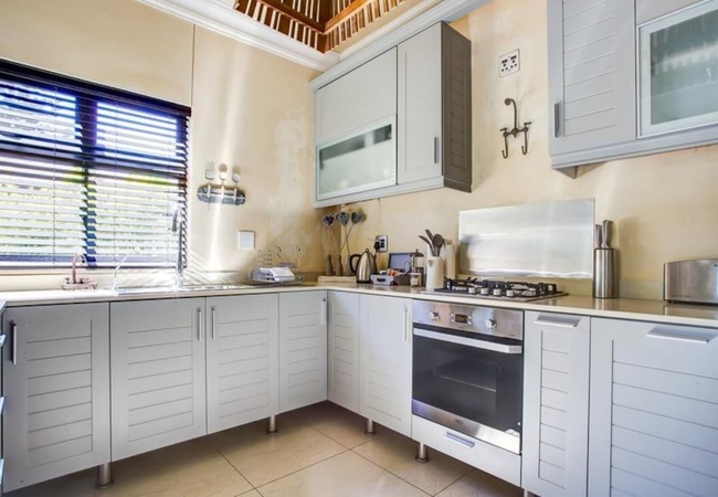 The kitchen at Shalom Leez is well equipped for self catering and has a bar counter with four bar stools which is ideal to enjoy a meal at.