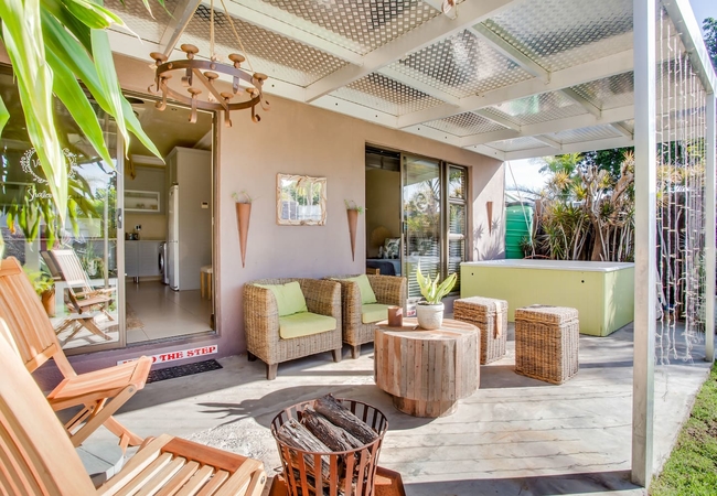 This upmarket self-catering holiday apartment is ideally suited for business, single travellers or couples seeking the privacy of a stress free break away! Enjoy the luxury of your garden, braai area and jacuzzi to relax in. Tastefully furnished and equipped.