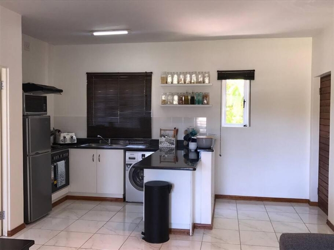 Sheffield Suite 1 is a self-catering apartment situated within a secure complex in Ballito, KwaZulu-Natal. This unit is perfect for couples or business and leisure travelers seeking a relaxing retreat. Designed to accommodate two guests, the suite features one bedroom furnished with a queen-size bed and a bathroom equipped with a shower-over-bath, washbasin, and toilet. The kitchen is well-appointed with a fridge-freezer, stove, oven, washing machine, cutlery, crockery, and tea- and coffee-making facilities. The living area includes a comfortable couch and a TV, and it opens onto a covered balcony furnished with an outdoor dining table. Complimentary Wi-Fi is available throughout the unit. Guests can enjoy the communal swimming pool, braai facilities, rugby pitch, running path, and secure off-street parking. The property is conveniently located near various local amenities, including shops, restaurants, and the beach.