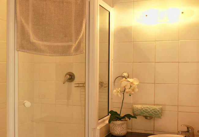 The studio is furnished with a Queen-size bed and has a separate bathroom with a shower.