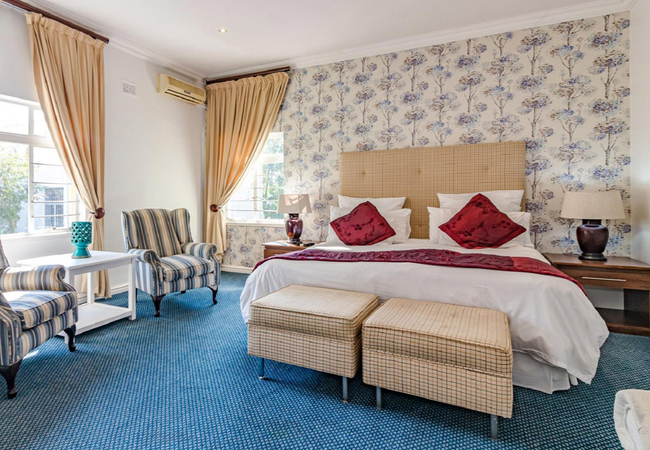 Tastefully decorated bedroom fitted with a King-size bed or twin single beds on request and an en-suite bathroom with a bath and shower. Amenities include: Tea/coffee facilities, Flat-screen TV with DStv / satellite (limited channels), air conditioning and safe.