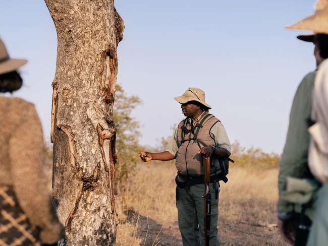Luxury-but-back trail camps, bucket showers are filled on demand with warm water, meals are prepared over an open fire by an expert cook, there is no electricity, nor cellphone reception. Just you and the noises of the magic African bush. All luxury tents are equipped with King-size beds or twin beds if preferred, a shower, mini bar, mosquito nets and a seating area. Days start with a four hour walk at a leisurely pace with an armed specialist guide. Experiencing the bush on foot is entirely different from being on a safari vehicle, enabling you to completely immerse yourself in the mesmerising sights, sounds and smells of the African bush. Stops for snacks and drinks tide you over until a tasty brunch is prepared back at the camp. After some me' time spent snoozing or reading outside your tent, a savoury and sweet tea' is prepared before another approximately two hour walk at the end of the afternoon, ending at a viewpoint to enjoy an unforgettable African sunset. A short drive will bring you back to camp with time to freshen up before dinner around the campfire.