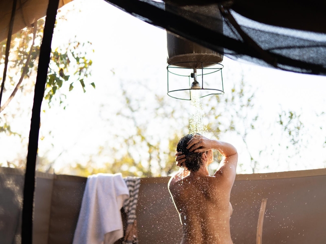 The Simbavati Trails Camp offers four en-suite Meru-style safari tents and hosts a maximum of eight guests. Bucket showers are filled on demand with warm water.
