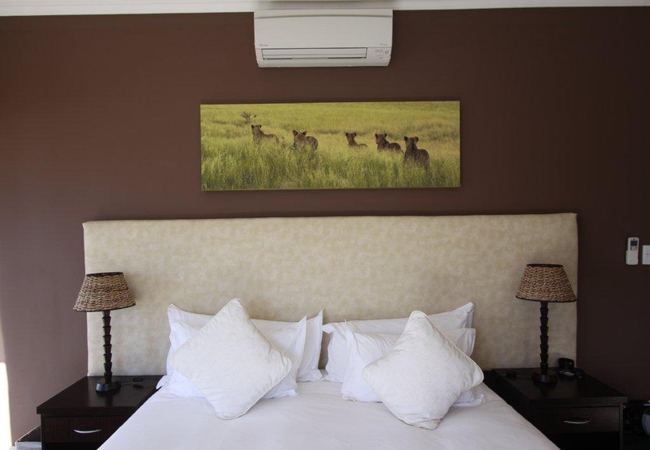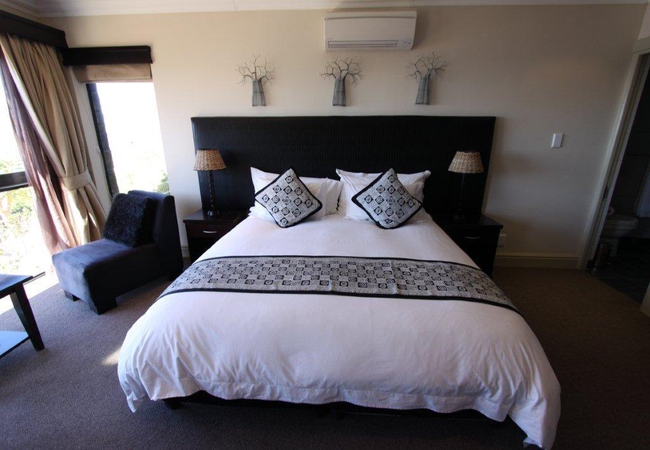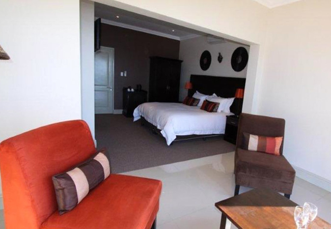 This Double or Twin corner Suite - A contemporary African themed room has stunning ocean/mountain views and can be made up as twin beds or a king size bed. There is a sitting area, Satellite T.V., minibar, tea/coffee making facilities, air-conditioning, internet access, safe and hairdryer.