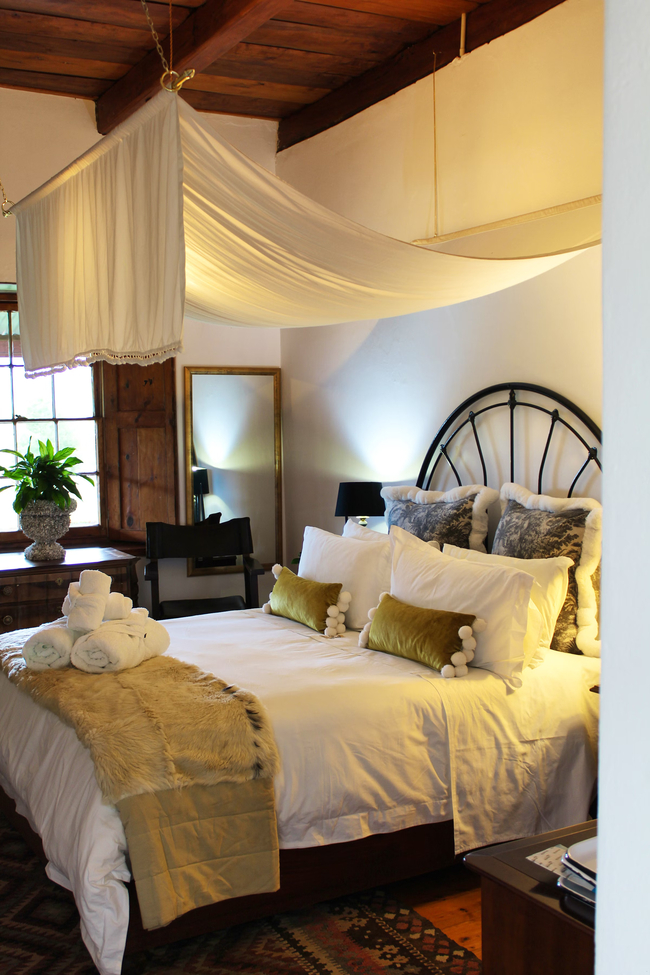 In a hidden valley surrounded by picturesque mountains, a piece of heaven rests. Upon arrival your eyes are met with a landscape painting filled with ripe wheatfields, orchards and age old trees ripe with history. Whilst never a hinder, the working farm plays out from the porch as little lambs suckle from on a caring ewe with wiggling tails. The old farmhouse tastefully restored to its Yester glory, provides much more than needed for a luxury farmstay. With 5 bedrooms, wooden floors, indoor braai and well-equipped stylish kitchen, this' break-away must' offers a whole bag of upper-class value! Impeccable cleanliness, attention to detail and an artful hand to all normal utilities determines the class of any stay. We found ourselves want for nothing. In winter and in summer this well decorated home from home will provide all the relaxation you can hope for. This was a personal experience long to be remembered and definitely repeated!