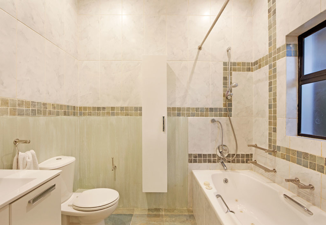 Three of the five bedrooms are furnished with a King-size bed, while the other two are furnished with Queen-size beds. Three bedrooms have a spacious en-suite bathroom, while the other bedrooms have access to the shared bathroom. The bathrooms are fitted with a bath, shower, toilet and basin. There is also a separate guest toilet.