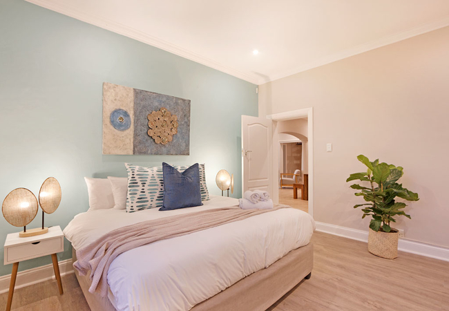 Sir David Baird 22 is a self catering holiday villa in Bloubergstrand. The villa has five bedrooms and is capable of comfortably accommodating up to ten guests. Each bedroom has a unique style that complements the home's overall soothing aesthetic.
