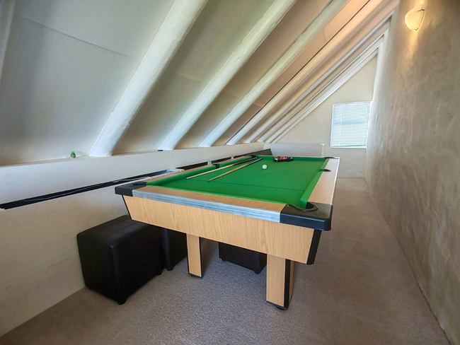The lounge area contains comfortable seating, a smart television with access to YouTube and Netflix, and complimentary Wi Fi. Guests may also enjoy recreational time with the pool table.